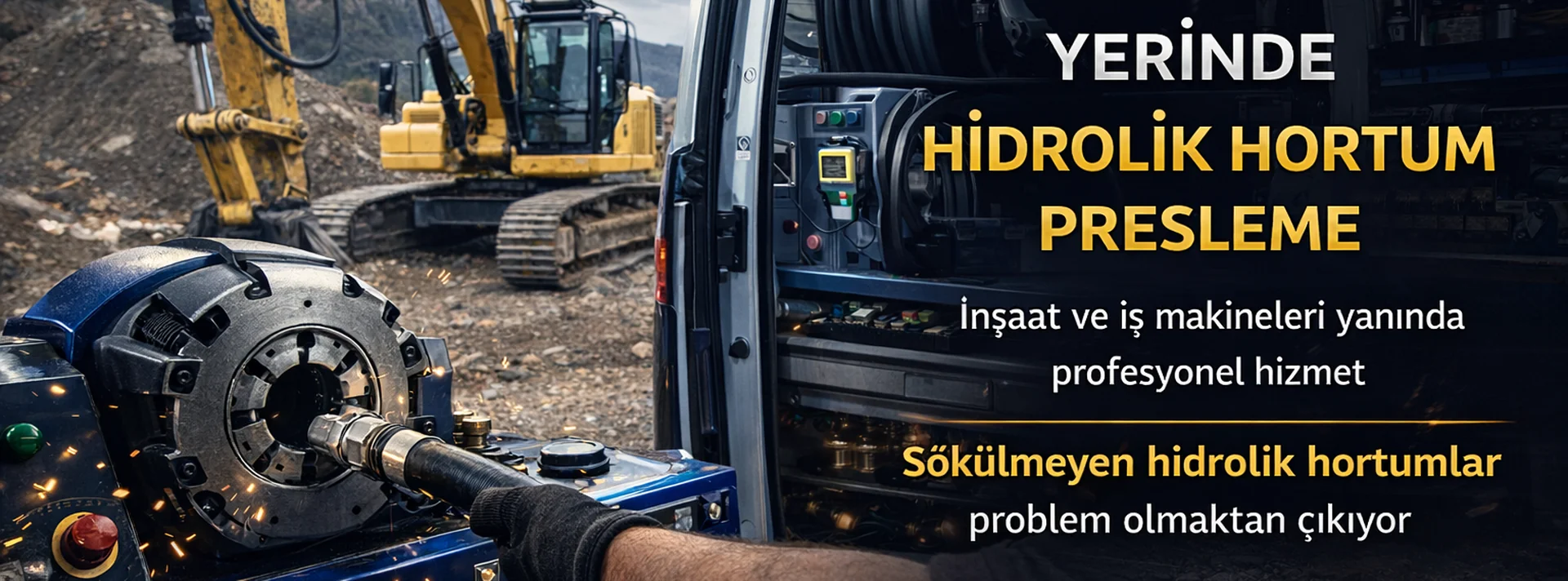 Hidroer Flex, sökülmeyen hidrolik hortumlar için mobil ekipmanla yerinde presleme ve montaj hizmeti sunar.